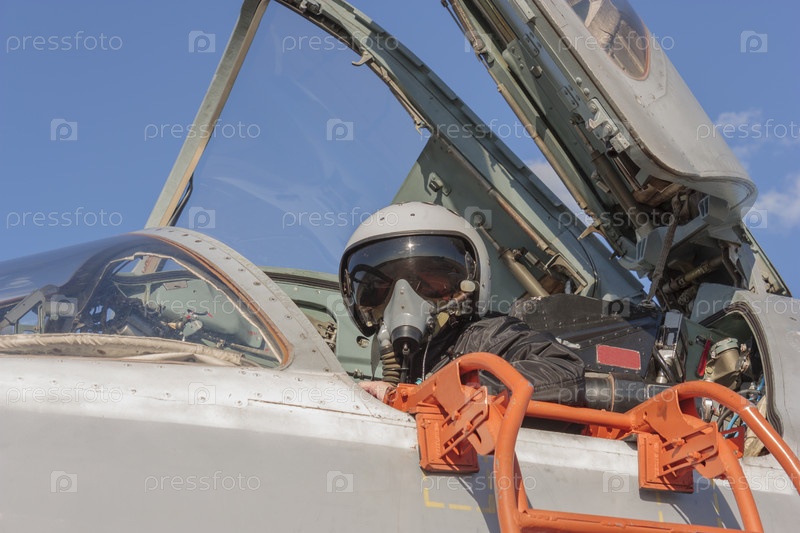 Военный летчик в кабине реактивного самолета