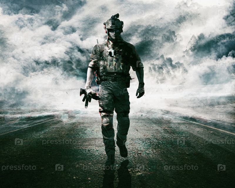 Армия солдат на дороге