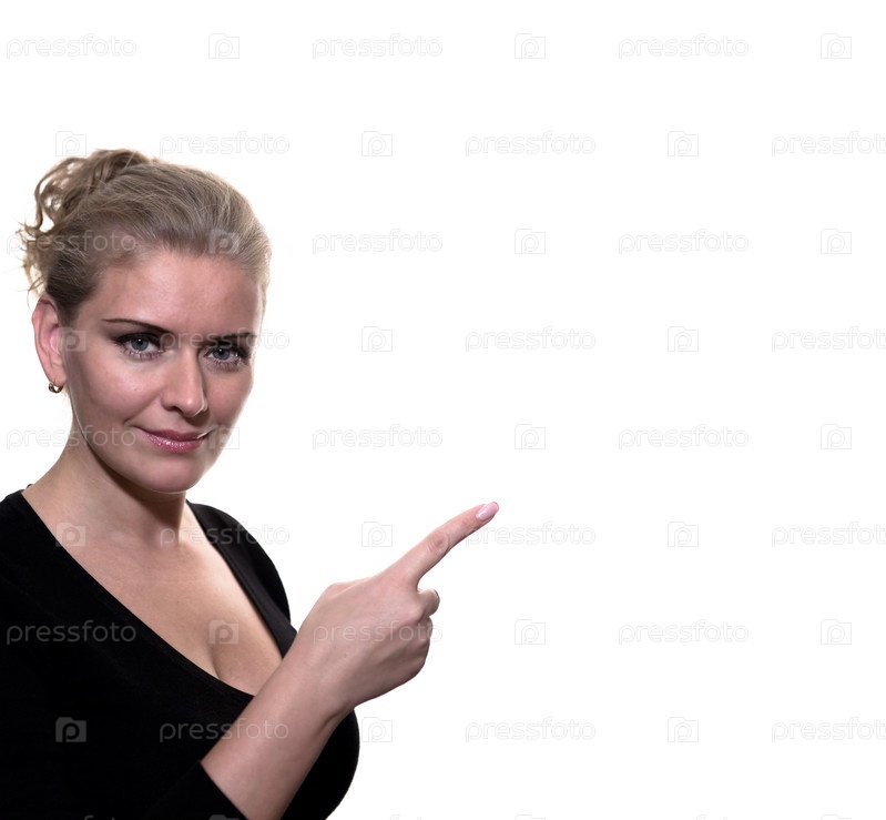 Красивая женщина указывает