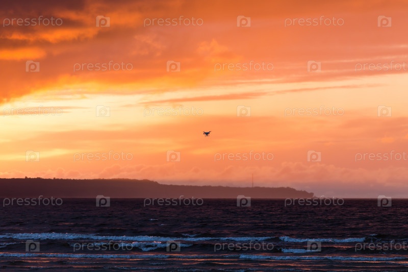 Летающий дрон над морем
