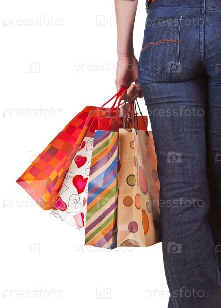 Девушка с бумажными пакетами в руках