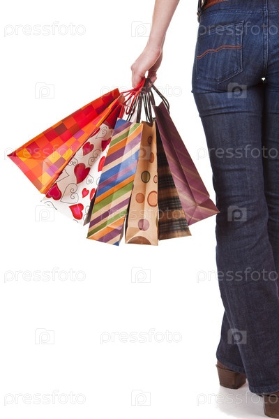 Девушка с бумажными пакетами в руках