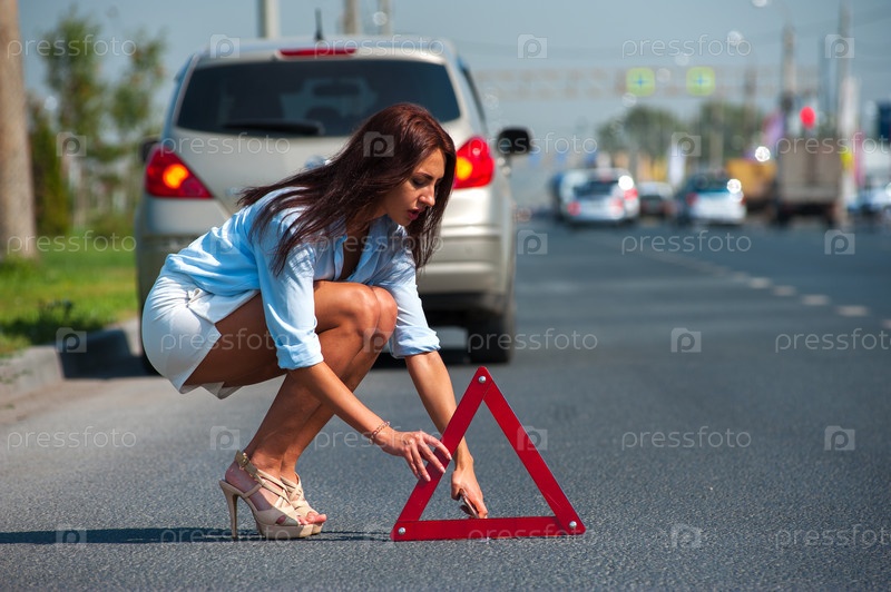 Женщина со знаком аварийной остановки