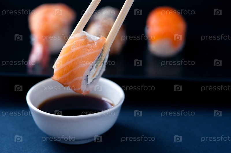 Ролл и соевый соус