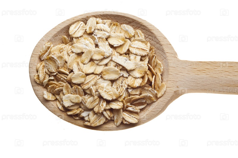 Овсяные хлопья на деревянной ложке