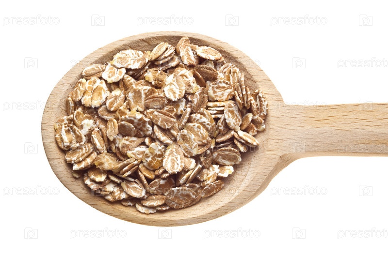 Овсяные хлопья на деревянной ложке