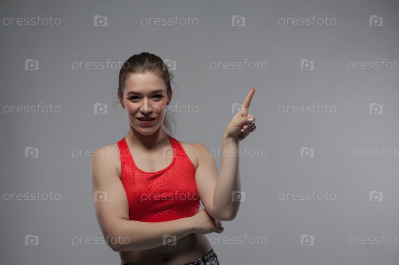 Счастливая спортсменка позирует на белом фоне
