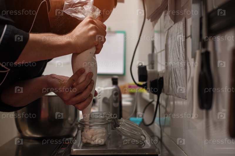 Повара готовит мороженое в кухне