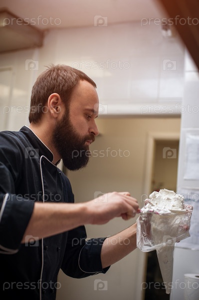 Молодой повар в кухне
