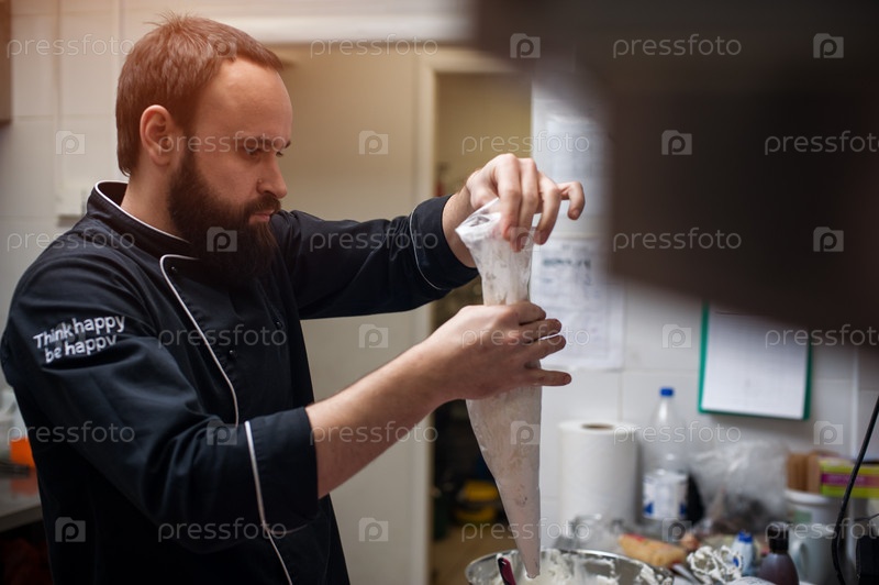 Молодой повар в кухне