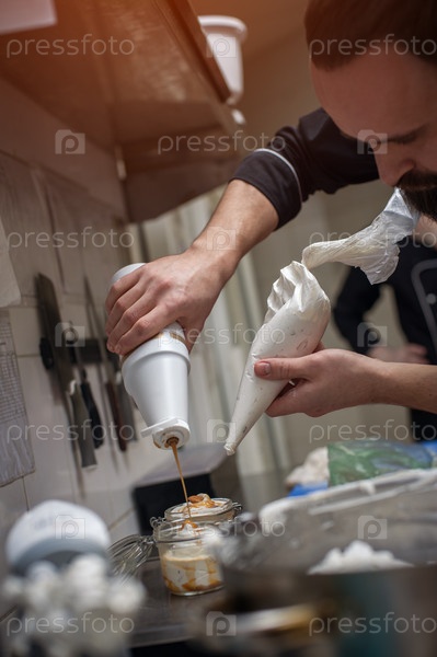 Повар готовит мороженое в кухне