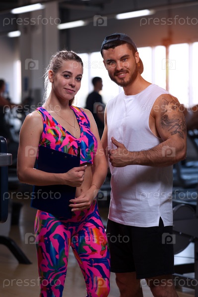 Спортивный тренер с молодой красивой женщиной