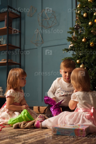 Возбужденные дети с подарками