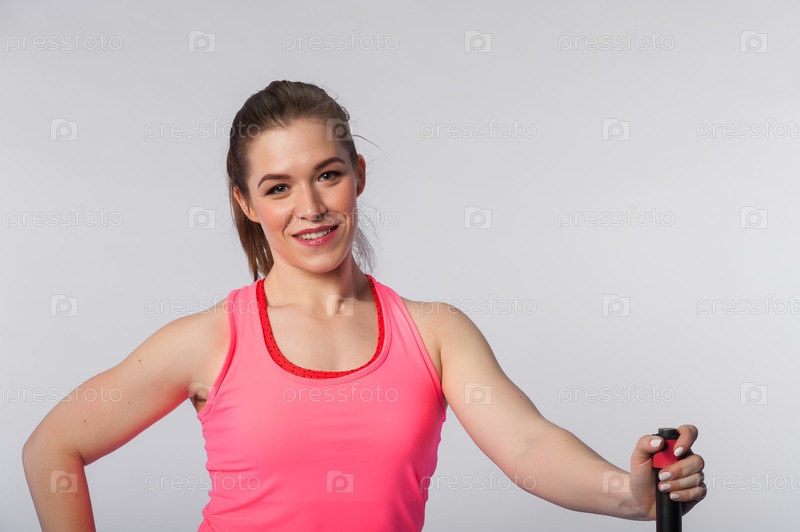 Счастливая женщина позирует со штангой