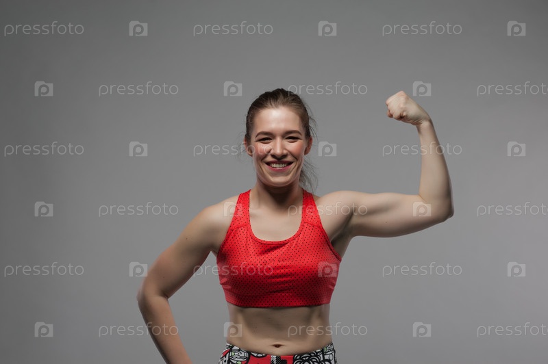 Сильная девушка показывает бицепсы