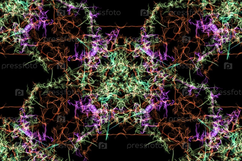 Вихри фрактальных линий на черном фоне