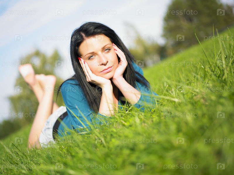 Молодая девушка на зеленом лугу