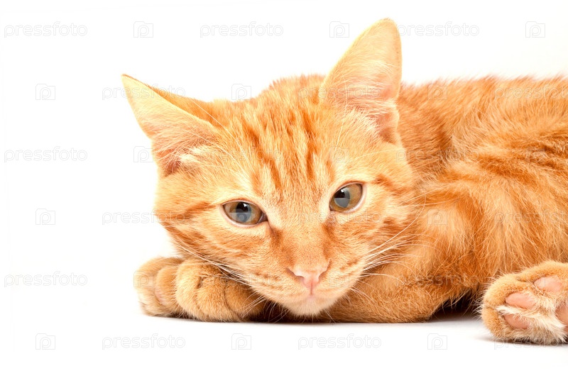 Милый рыжий кот на белом фоне