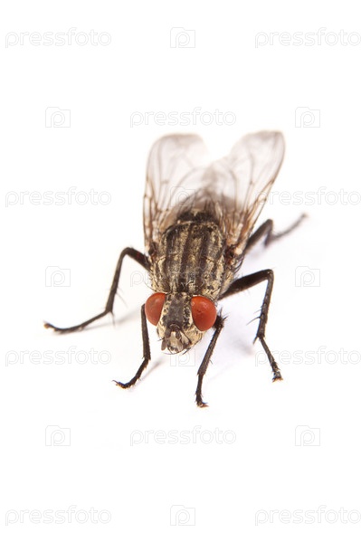 Муха крупным планом, изолированная на белом