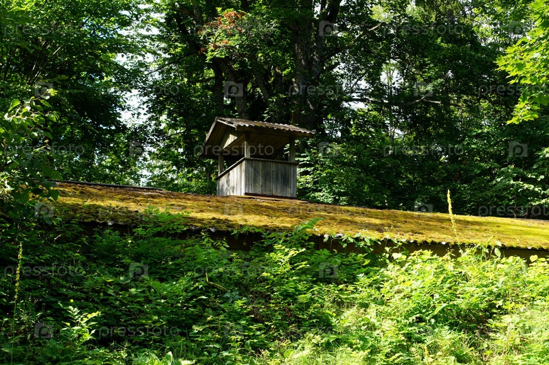 Крыша дома с вентиляцией, мхом и растениями
