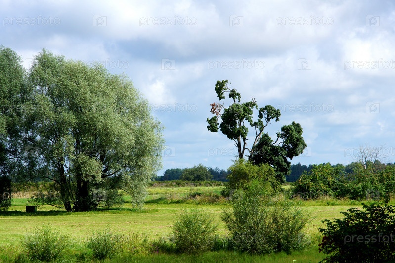 Сельский пейзаж с деревьями и небом