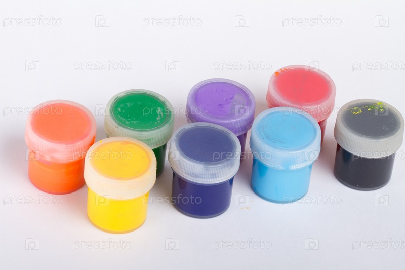 Набор гуашевых красок на белом фоне