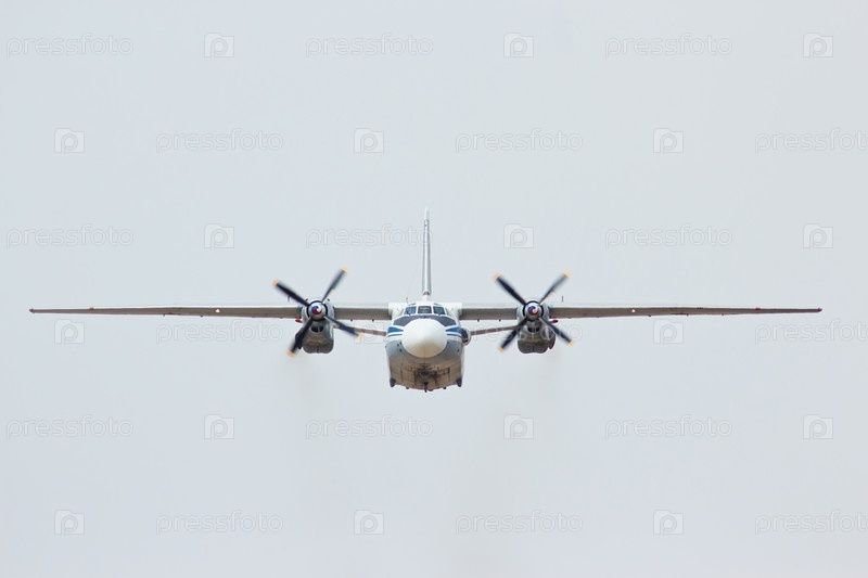 Российский военно-транспортный самолет Ан-26 в облачном небе