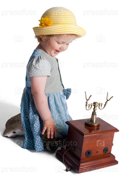 Маленькая девочка со старинным телефоном