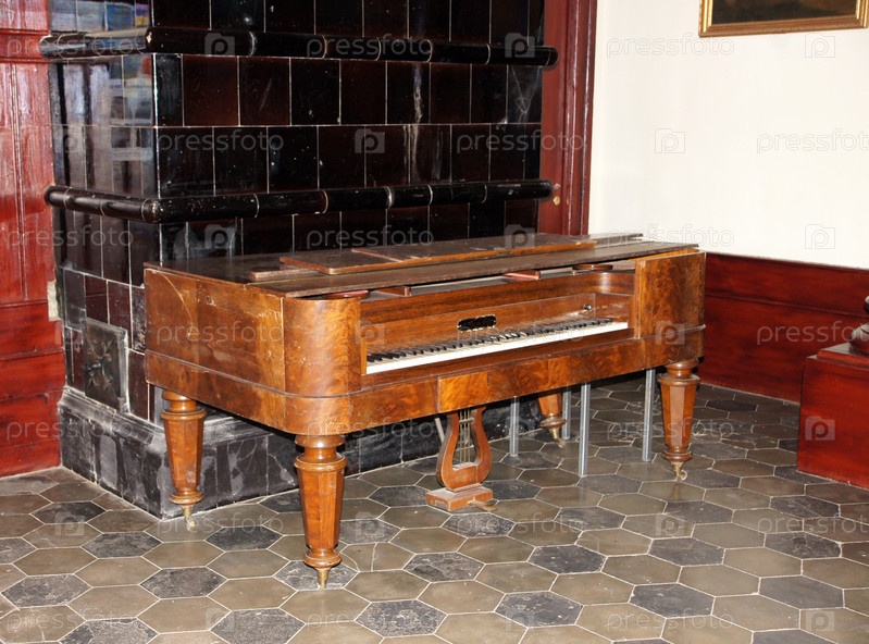 Старый клавесин стоит в комнате у стены