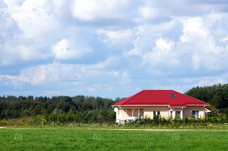 Современный дом на фоне облаков