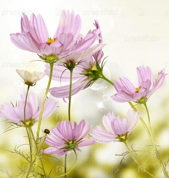 Декоративные цветы на абстрактном фоне. Лето