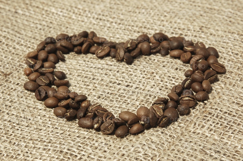 Сердце из кофейный зерен на холсте