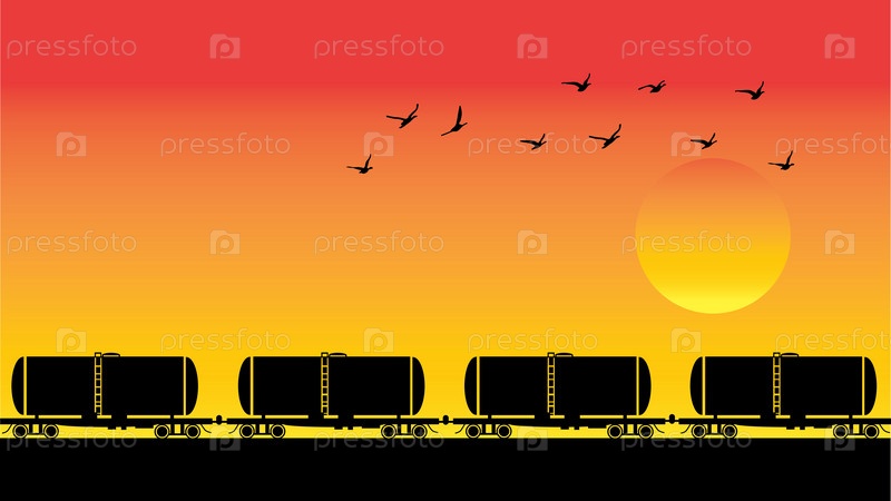 Вагоны-цистерны, птицы и закат
