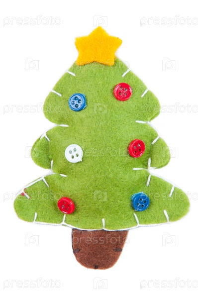 Новогоднее украшение в виде зеленой елки на белом фоне