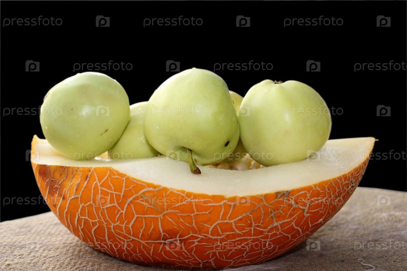 Яблоки и дыни на черном фоне