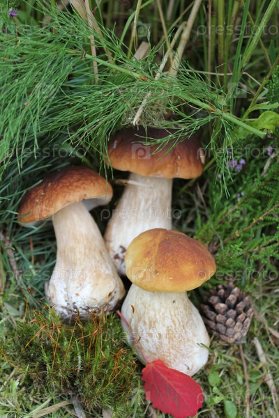 Группа съедобных грибов на траве