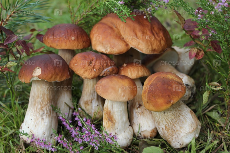 Группа съедобных грибов на траве