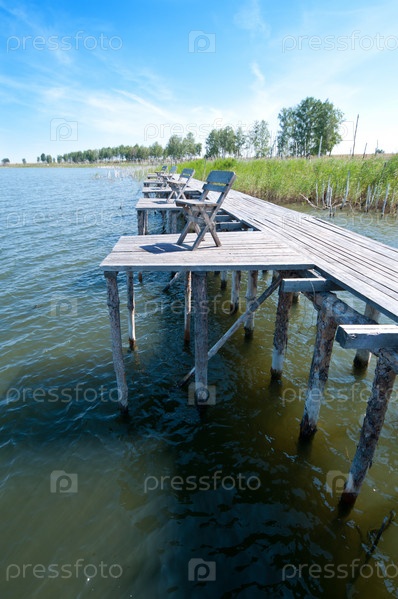 Старый деревянный рыбацкий пирс на озере
