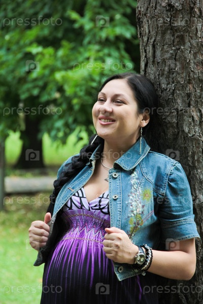 Беременная женщина на прогулке в городском парке