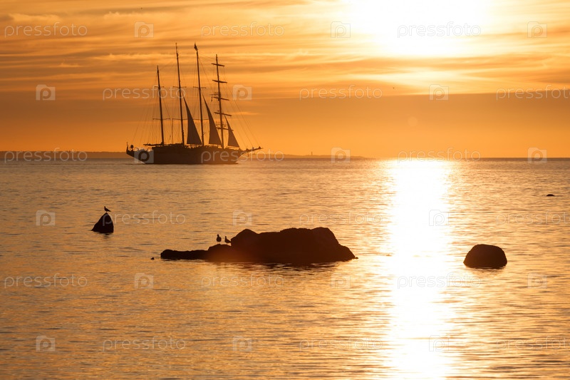 Силуэт шхуны на закате