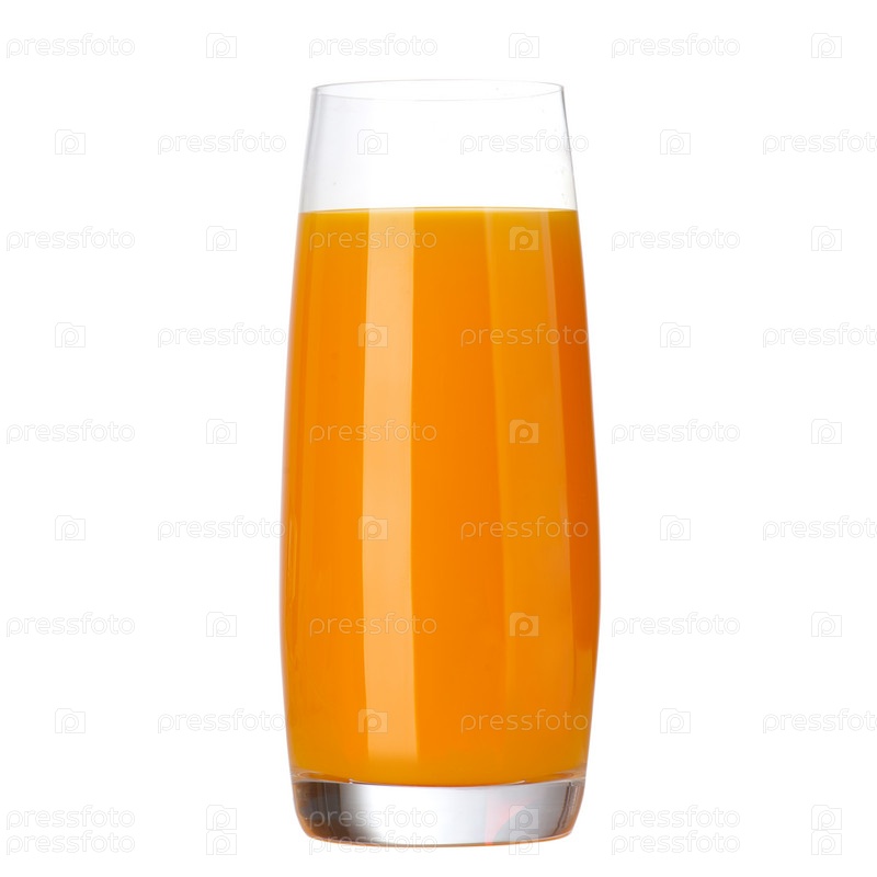 Полный стакан апельсинового сока на белом фоне
