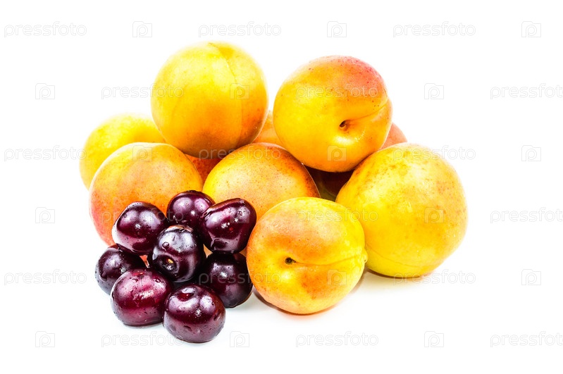 Спелые абрикосы и красная вишня