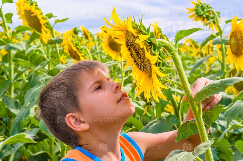 Мальчик, нюхающий подсолнечник