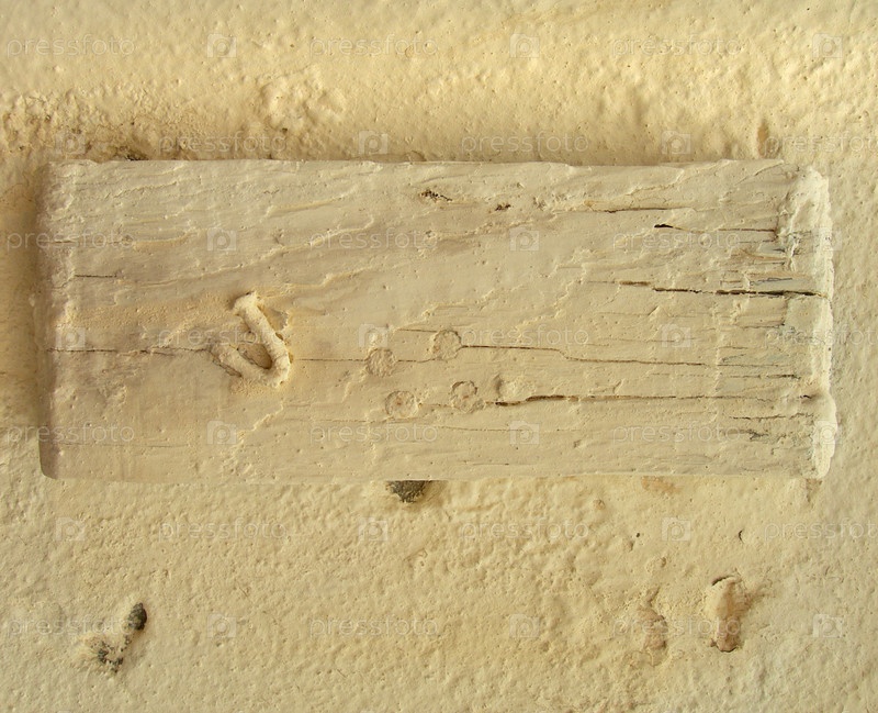 Старая бежевая обшарпанная стена с деревянной деталью для фона