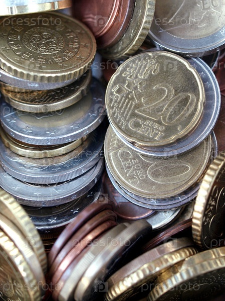 Различный монеты евро в качестве фона