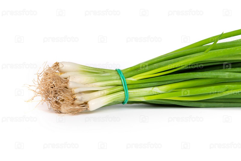 Свежий зеленый лук, изолированный на белом фоне