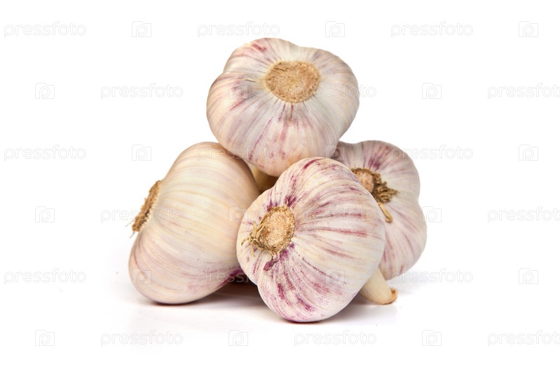 Головки чеснока, изолированные на белом фоне
