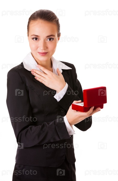 Восхищенная бизнес-леди с коробкой для ювелирных изделий