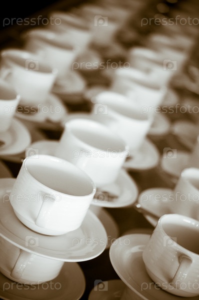 Белые чашки и блюдца в стиле ретро