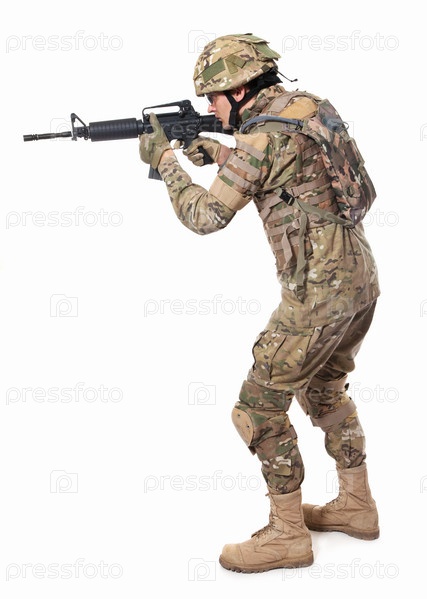 Современный солдат с оружием
